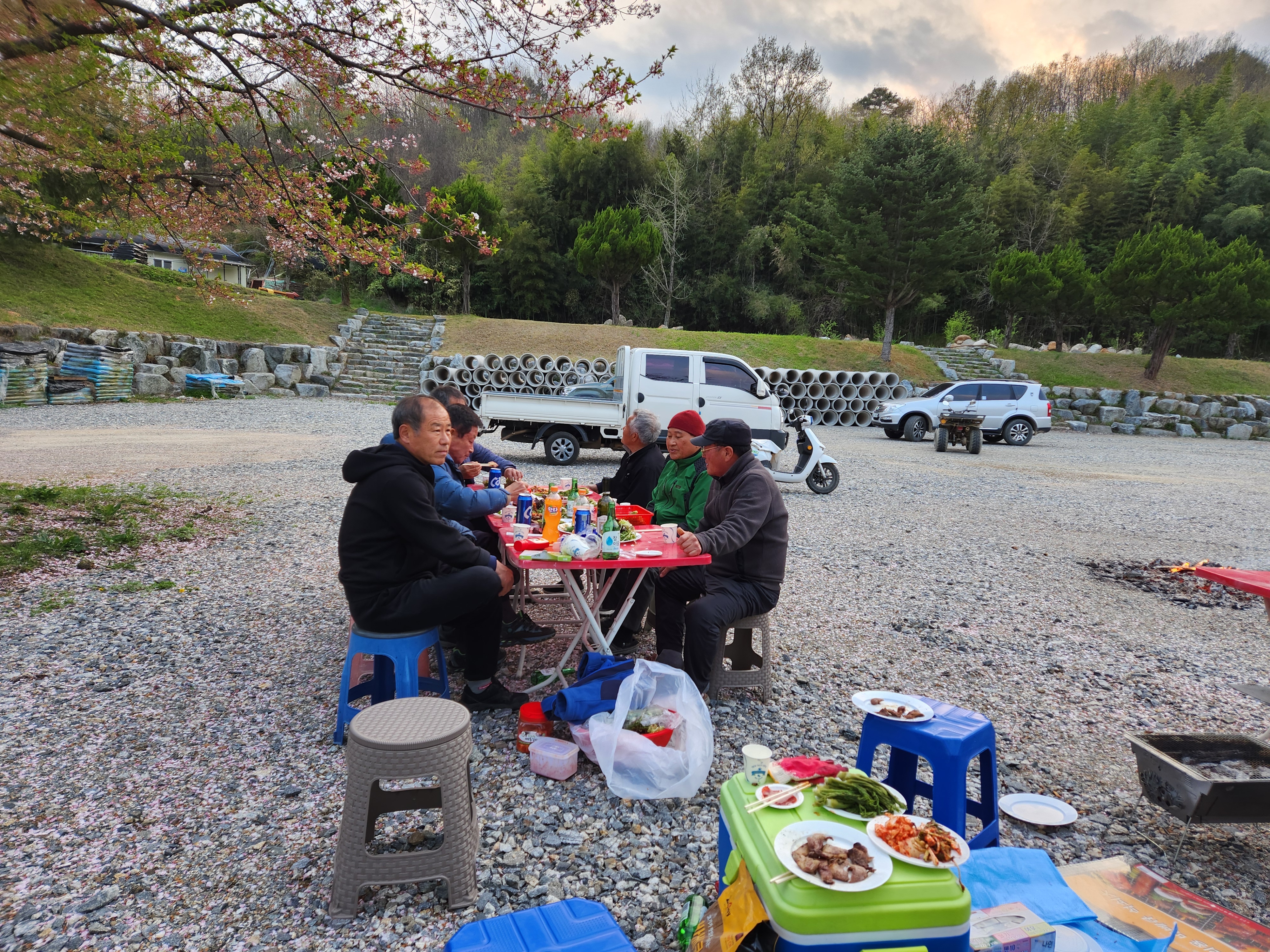 저녁무렵에는 꽃비내리는 남사학교교정에서 한잔하고..