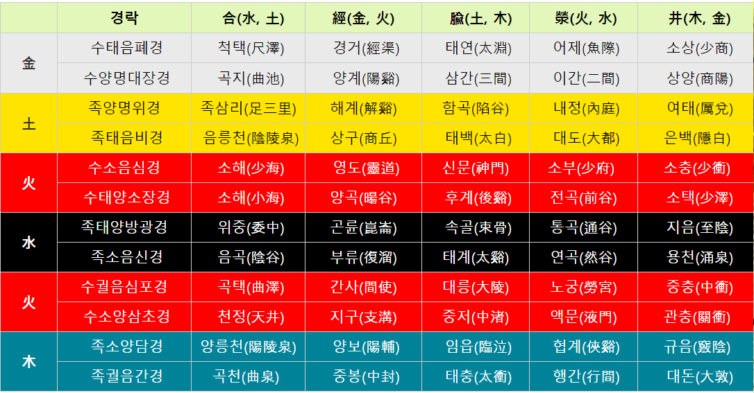 이후 오수혈(五輸穴)의 원리, 위치 및 특성에 대해서 공부한다.